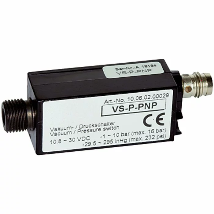 Universal electronic vacuum and pressure switch for safety monitoring, optimisation of cycle times and regulation circuits. Its small size and low weight permit installation directly at the point of use. <br>Suitable for all special applications in the vacuum and compressed air sectors. Adjustable vacuum limit value and continuous vacuum monitoring.