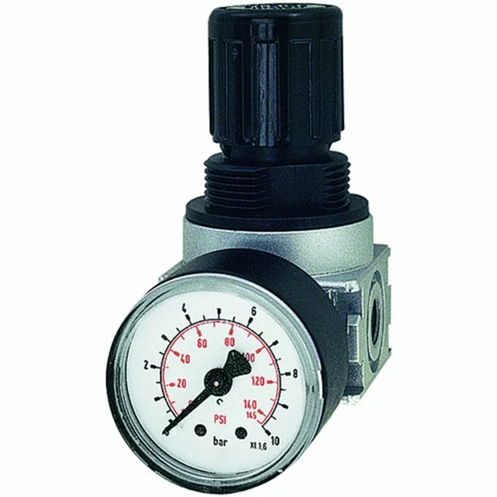 Reversible diaphragm pressure regulators, independent of inlet pressure, with self-relieving design. The pressure setting can be locked by pushing the button down.
