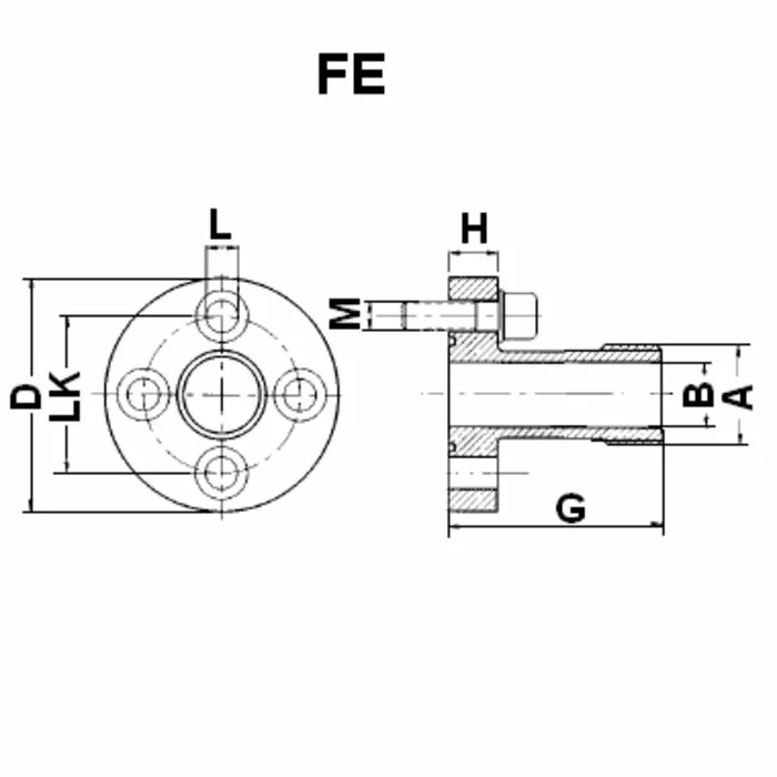 | FE 2 | 250 | 40 | G 3/4" -14 | 19 | 58 | 60 | 12 | 8.5 | (4 шт.) M 8 x 25 | 25.12 x 1.78 |