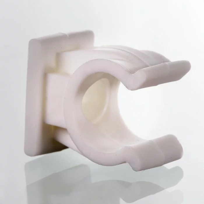 Для укладки пластмассовых труб. Крепление осуществляется с помощью ступенчатого отверстия.